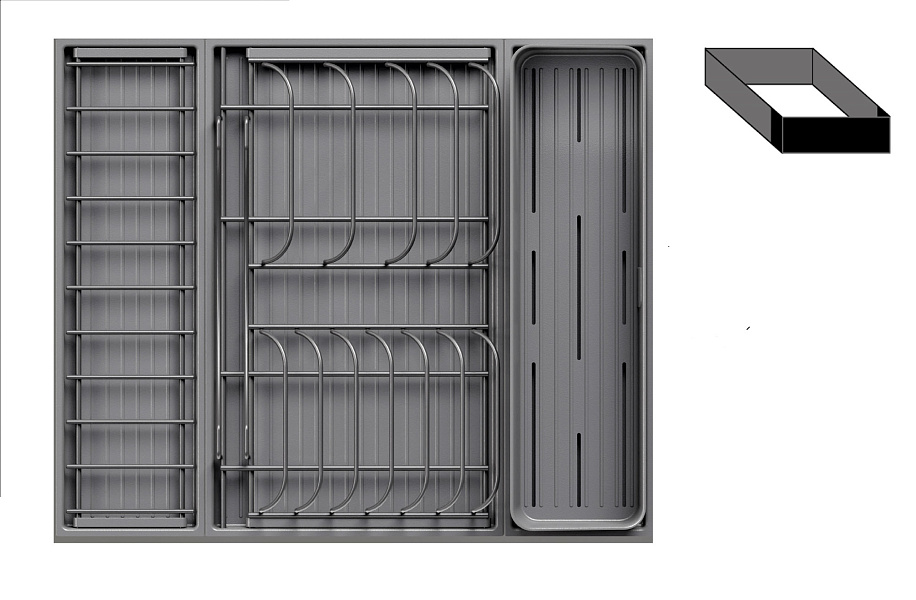 Модель — 1 большой модуль для посуды + 1 малый модуль с решеткой + модуль для столовых приборов