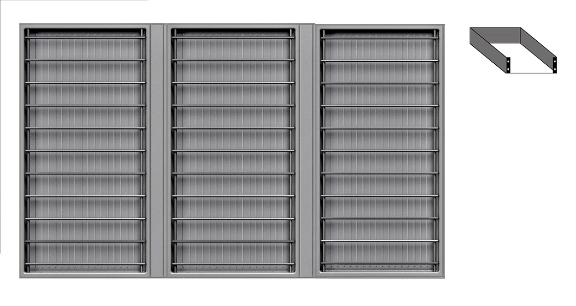3 модуля с решеткой большие (каждый модуль 423 х 248 мм, состоит из 1 х решетка металлическая, 1 х поддон пластиковый)