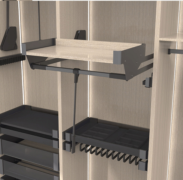 Пантограф с полкой в гардеробную Конеро состоит из: